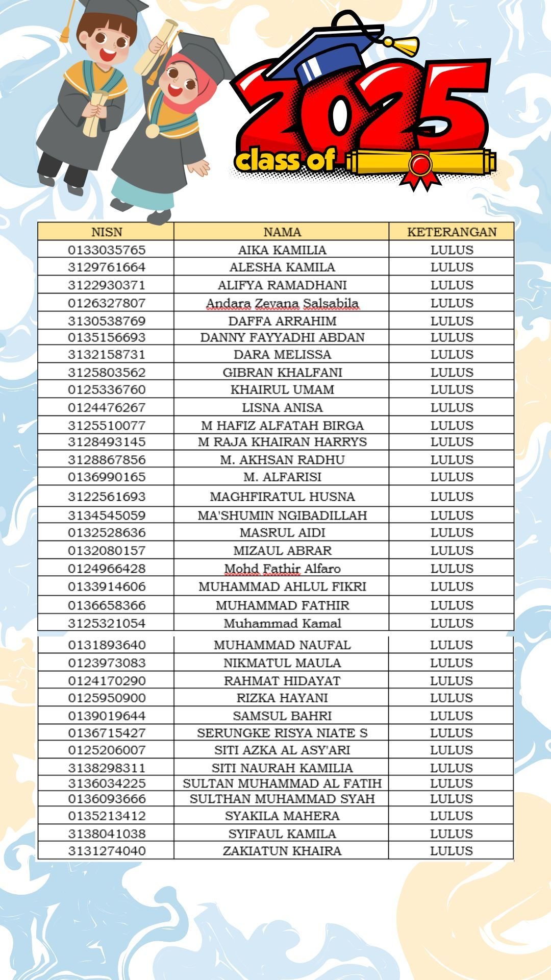 Pengumuman Kelulusan Peserta Didik Kelas 6 Tahun Ajaran 2024/2025